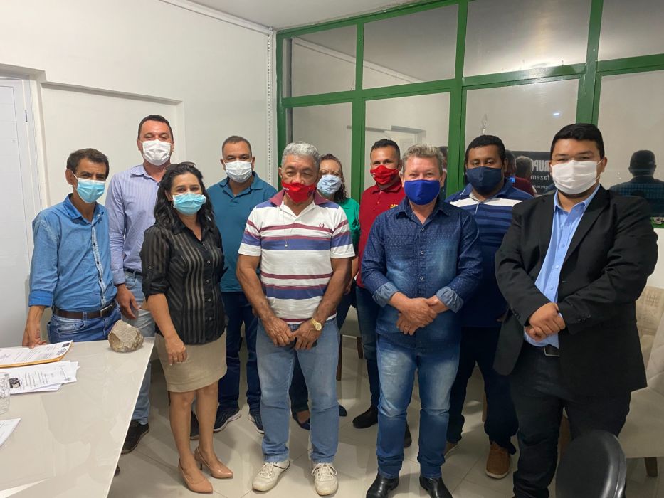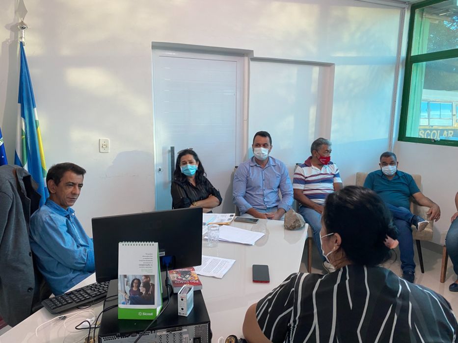 Reunião no gabinete do Prefeito Adair José com os vereadores(a) Márcia Leite, Jaydomar, Vadico Oliveira, Juarez (Caçula), Rozinei, Raquel Pereira, Júlio César, Adenor(Tuta), José Airton e com a Elisangela que é responsável pela regulação dos pacientes, para tratar sobre a pactuação do Município de Alto Paraguai com o Hospital Médio Norte de Arenápolis.