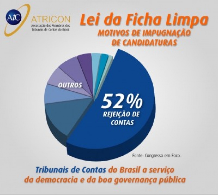 De 408 casos de impugnação de candidaturas com base na Lei da Ficha Limpa, 211 (52%) foram motivadas pela rejeição das contas pelos Tribunais de Contas. Esses dados tratam de impugnações já protocoladas pelos Ministérios Públicos Eleitorais de 24 Estados da Federação. A declaração final da inelegibilidade dos candidatos caberá à própria Justiça Eleitoral.