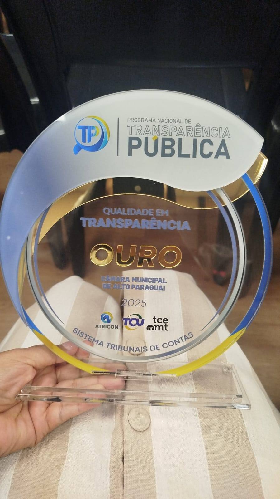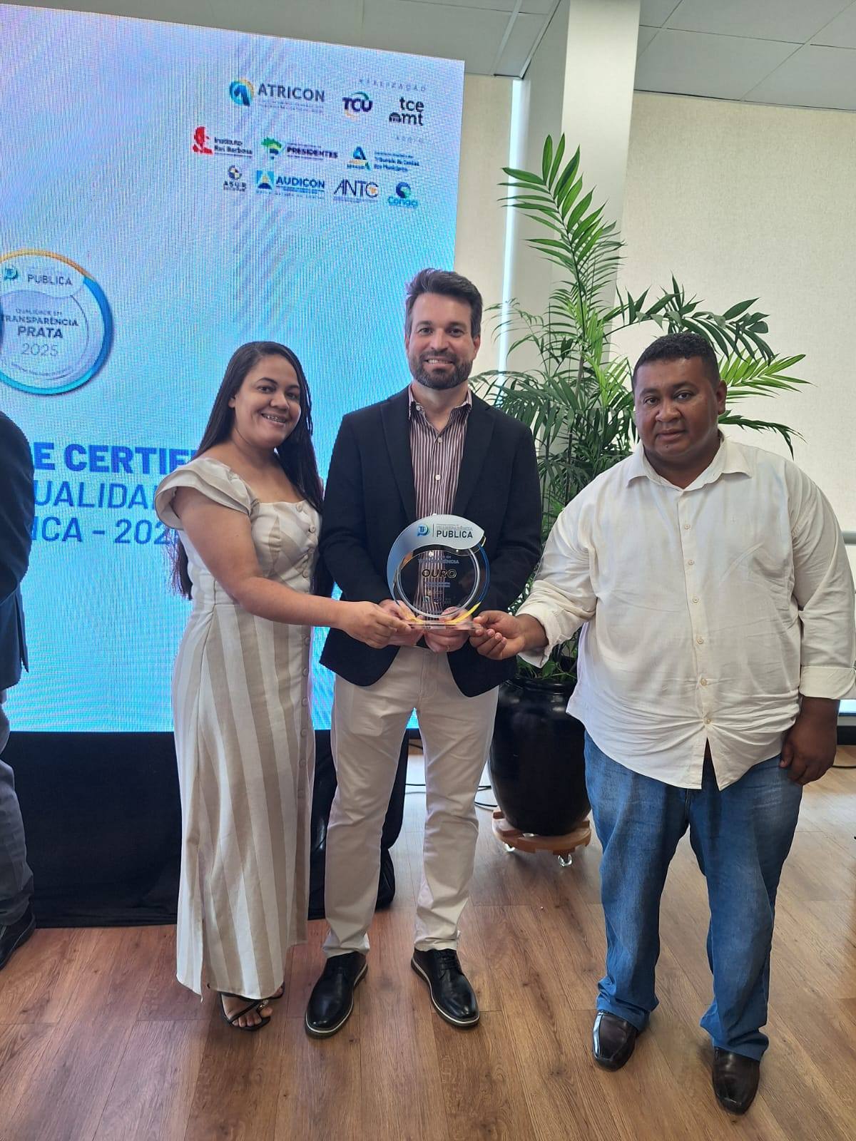 O Presidente da Câmara Rozinei Rodrigues, juntamente com Controladora Interna Gleiciane Araújo e a Diretora Célia Rocha, Participaram nessa manhã 10/12/2025, da Solenidade para entrega do Selo Ouro em transparência. O Evento aconteceu no TCE Mato Grosso, esse reconhecimento se dá a Avaliação minuciosa feita pelo TCE e pela Associação dos membros dos Tribunais de contas do Brasil ATRICON.